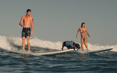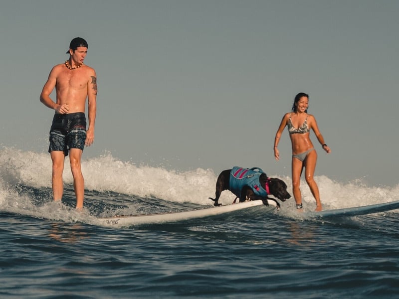 Learn to surf with trained rescue dogs in a 90-minute session