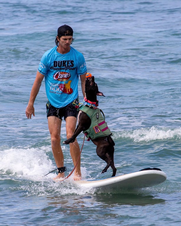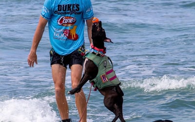 Learn to surf in Hawaii with trained rescue dogs by your side. This 90-minute lesson is geared toward first-time surfers and focused on fun on the water with your furry loved one.