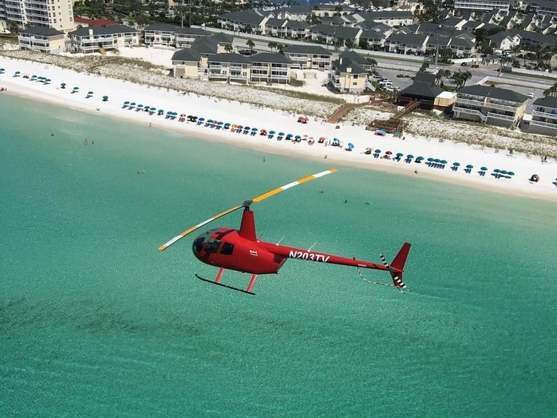 Fly the Emerald Coast on a 35-mile helicopter tour from Destin. See Miramar Beach, Sandestin, Topsail State Park, and Blue Mountain Beach.
