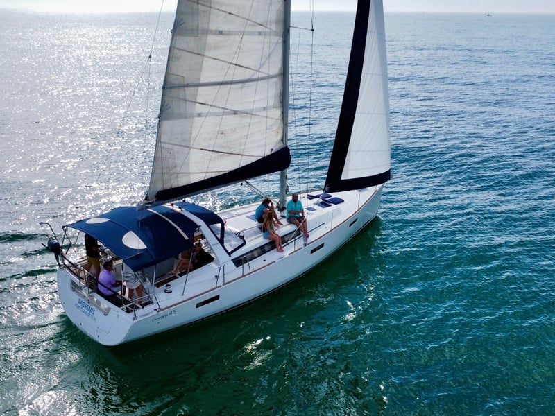 Requires a minimum of 5 guests; maximum 6 guests on the sailboat. Expect a 5–7 minute walk down the dock to the boat.