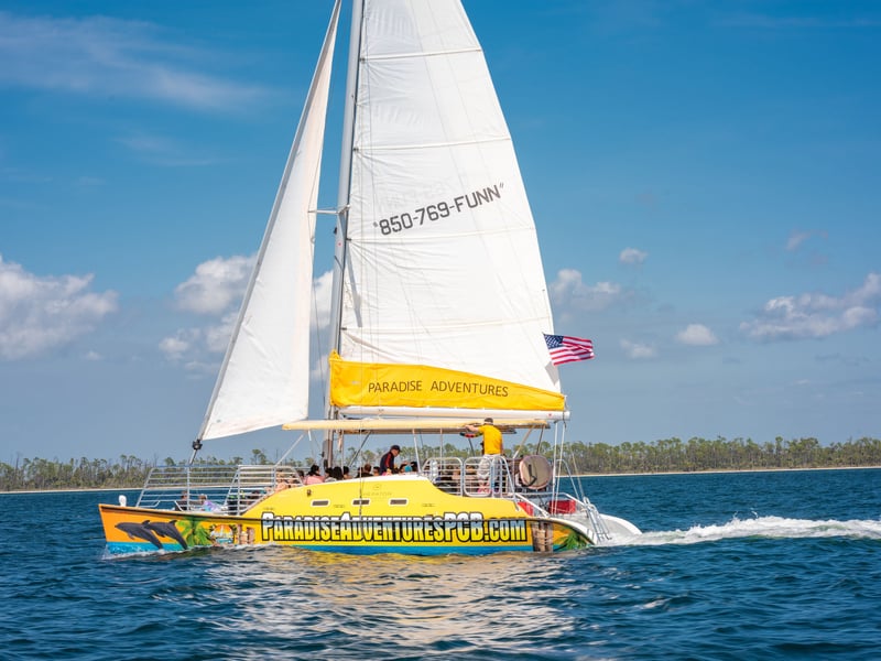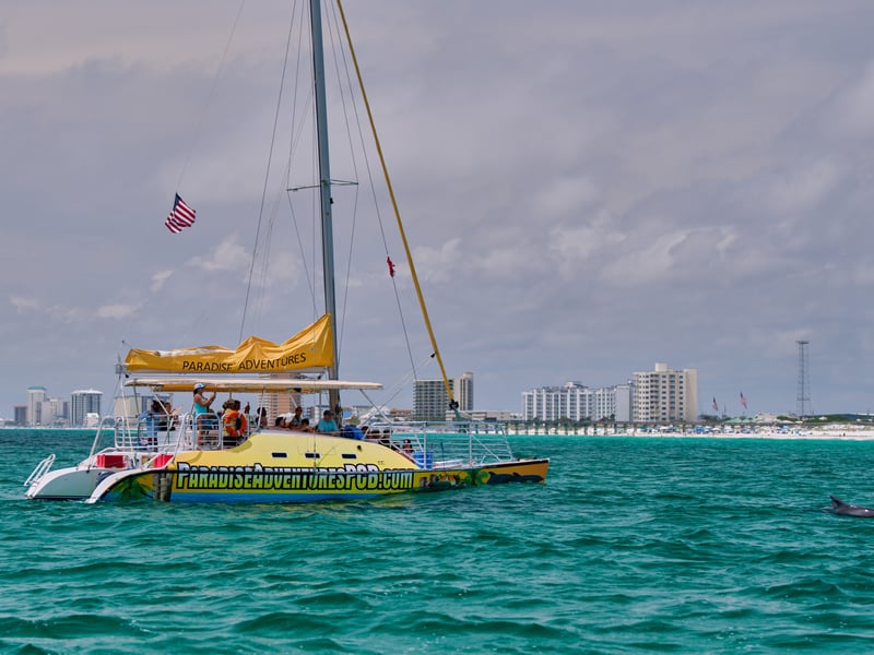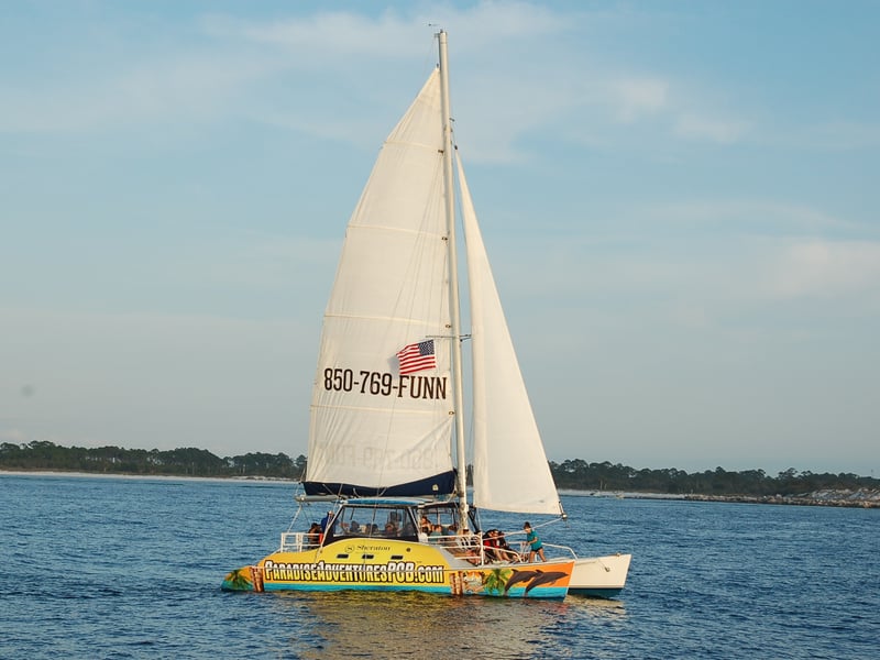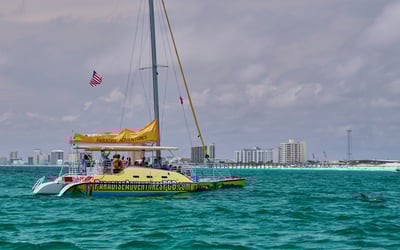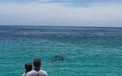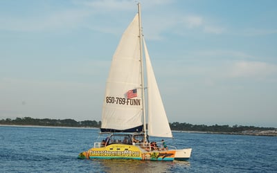 Sail the Gulf of Mexico aboard the 40-foot Footloose catamaran and look for dolphins as they swim and play. Enjoy tropical music and one complimentary beverage, with more snacks and drinks available for purchase; sightings are common but not guaranteed.