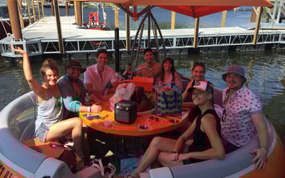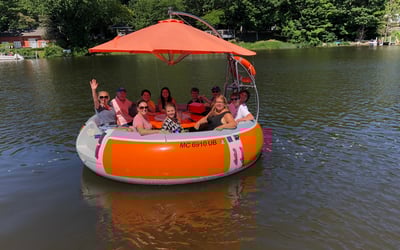 Experience a unique cruise on Tempe Town Lake with friends or family aboard a donut boat. Enjoy a comfortable round table, music, and scenic views as you relax on the water.