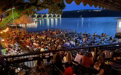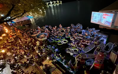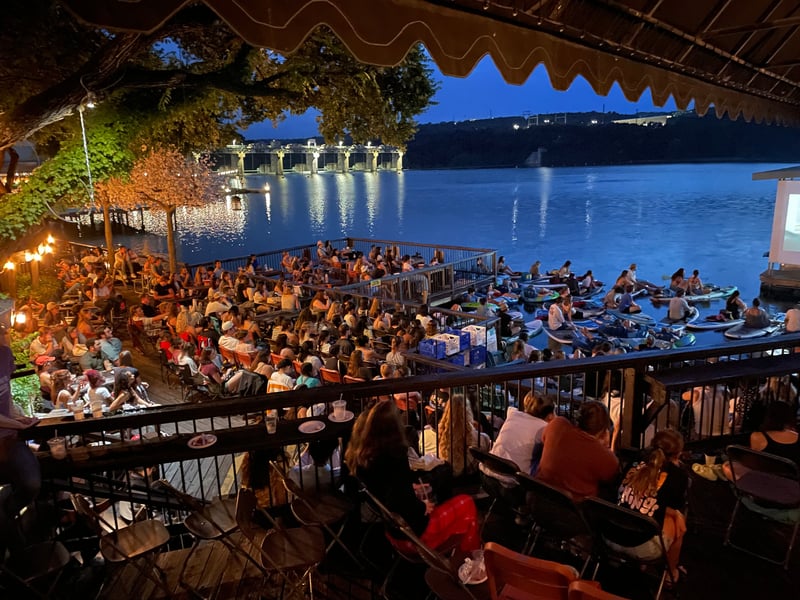 Enjoy VIP movie-night seating from your own donut boat moored at the dock for the full film. Settle in with prime views and step off anytime for snacks or restrooms at Mozart’s.