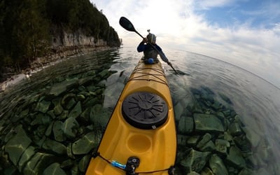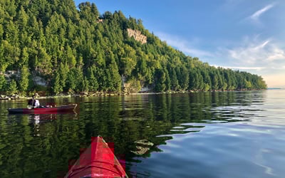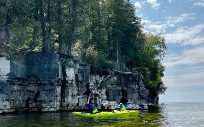 Paddle the clear waters of Lake Michigan from Garrett Bay to Door Bluff on a guided sea kayak tour. See a historic shipwreck, ancient pictographs, and Door County's tallest bluff in just two hours.