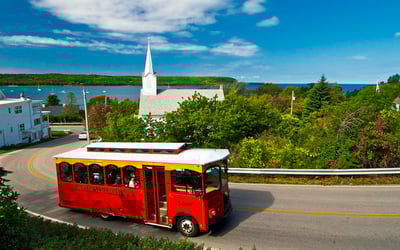 Explore Door County on a classic trolley with live narration. Take in scenic bluffs and villages, plus a 225-foot vantage point over the islands.
