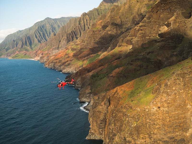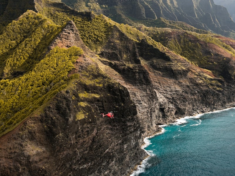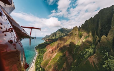 Take a 50–55 minute doors-off flight to see Waimea Canyon, Nā Pali Coast, and Wai‘ale‘ale Crater