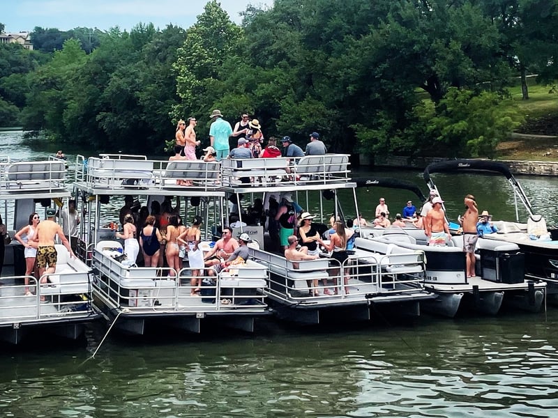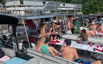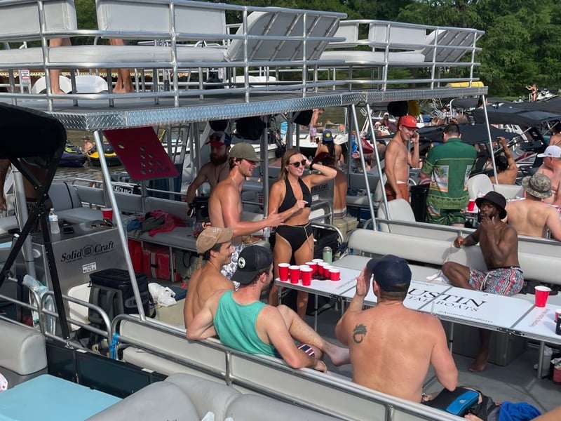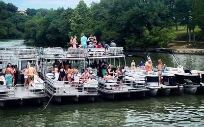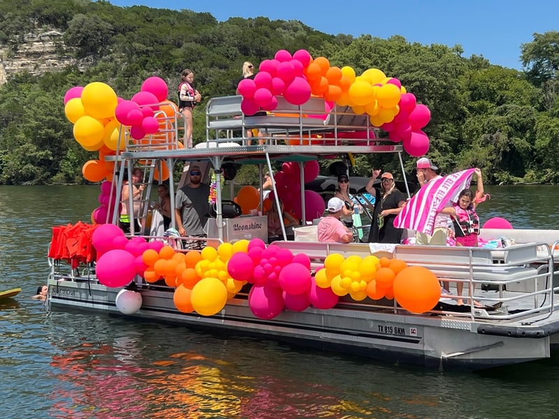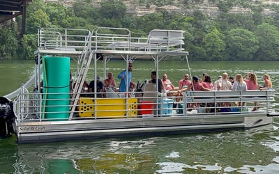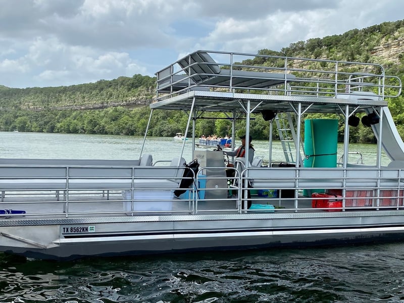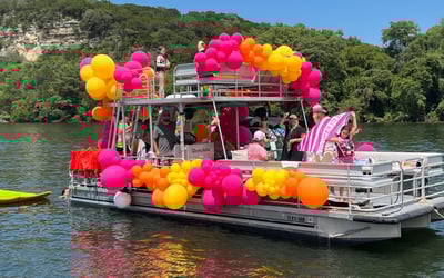 Charter a captained double-decker barge on Lake Austin with a waterslide. Enjoy time on the water with floating games, a cooler, and a premium stereo.