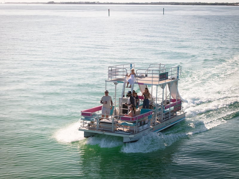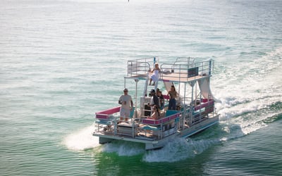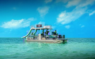 Cruise through scenic Key West channels at your own pace aboard a 25-foot double-decker pontoon. Enjoy shaded seating, coolers, and twin slides for in-water fun.