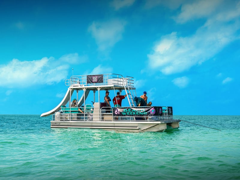 Explore Key West waterways with friends on a spacious pontoon equipped with two slides