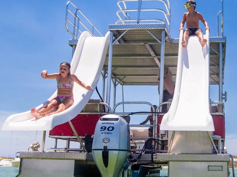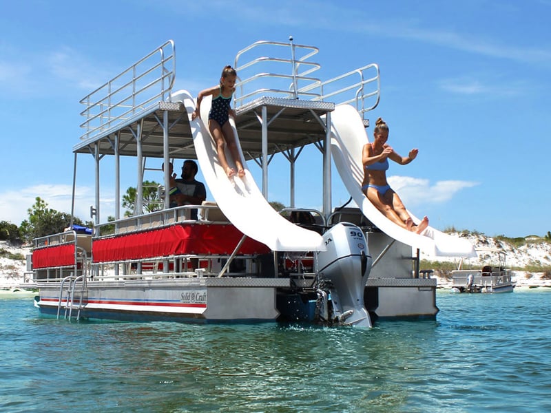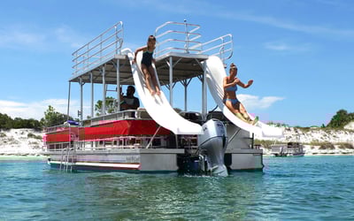 Take the helm of a double decker pontoon and cruise to Shell Island at your own pace. Fuel, safety gear, a bimini top, and maps are included to make your day on the water easy.