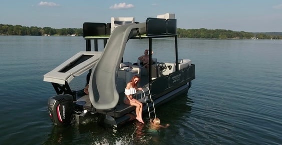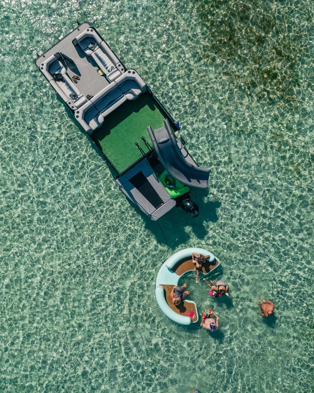 1. Ride a double-decker pontoon with slide, trampoline, water couch, and paddleboard