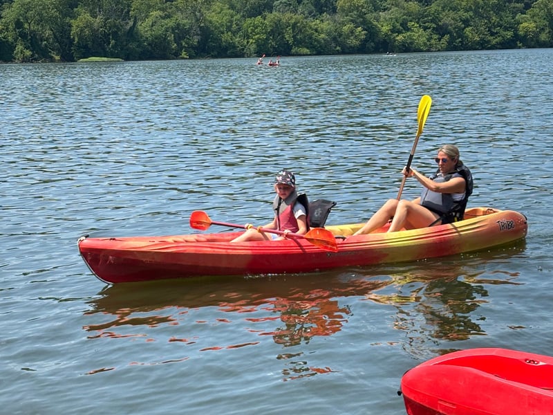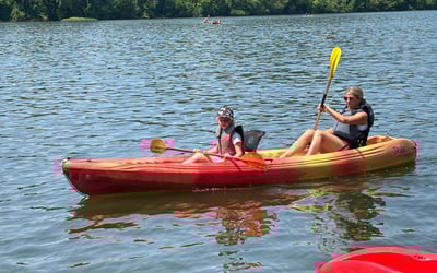 Children 7 or under may ride in a multi-occupancy boat with an adult if they can sit independently in a PFD. Ages 8–15 need a signed form and a supervising adult on the water; ages 16–17 need a signed form and may go without an adult. Arrive 10 minutes early; no on-site parking. Maximum capacity is 500 lbs per kayak; a small child under 3 ft/30 lbs may use the bump seat.