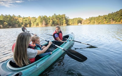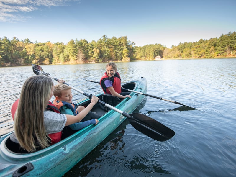 Paddle a double kayak on Lake Delton and explore Dell Creek toward the Mirror Lake Dam. Enjoy rental durations from 1 hour to 6 days.