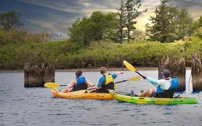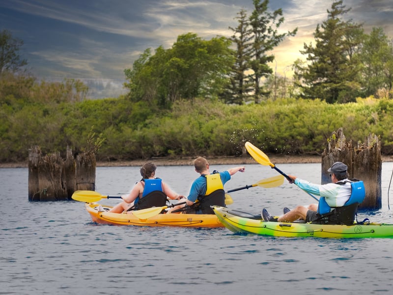 Rent a double kayak for 1–7 hours and paddle at your own pace. Everything you'll need to paddle is included; wear clothes you don't mind getting a little wet.