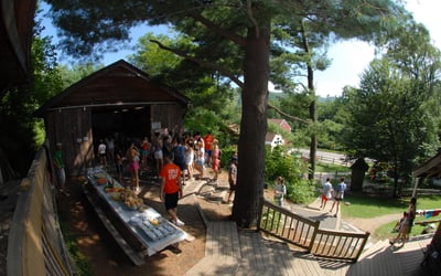 Registration takes place at 7 Main St., Charlemont, MA. Park in the unpaved lot and head up the stairs to the kiosk outside the red building, where guides will direct you to the appropriate pavilion.