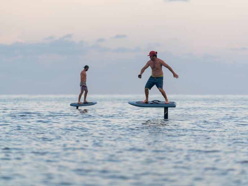 Glide above the water on silent, environmentally conscious eFoils. Enjoy a unique sensation that blends floating and flying during a 1-2 hour session.
