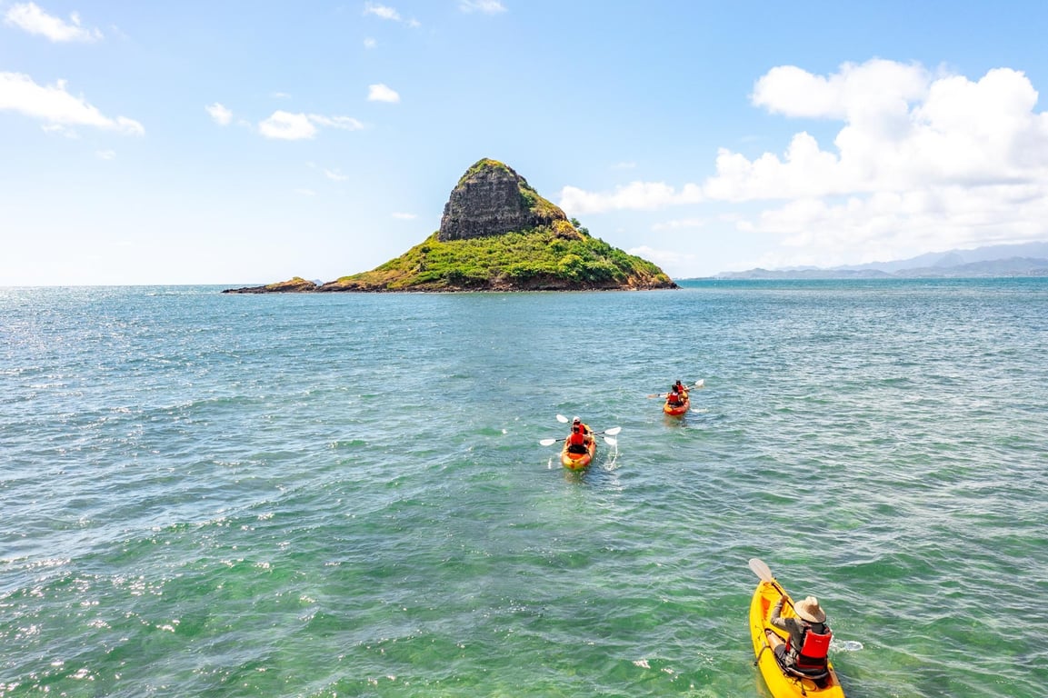 Explore Oahu’s Windward coastline on a self-guided ocean kayak. Choose from reef-protected routes and offshore islands, with all gear provided and easy pickup in Kailua.