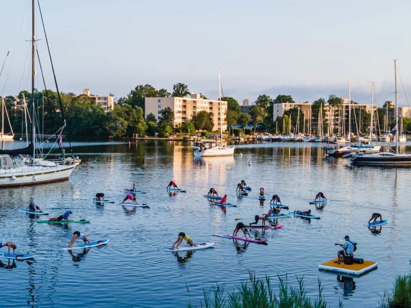 Paddle tranquil Back Creek in Annapolis on a stand-up paddleboard or single or tandem kayak. After a quick safety briefing, set off to admire waterfront homes, marinas, and local wildlife at your own pace.