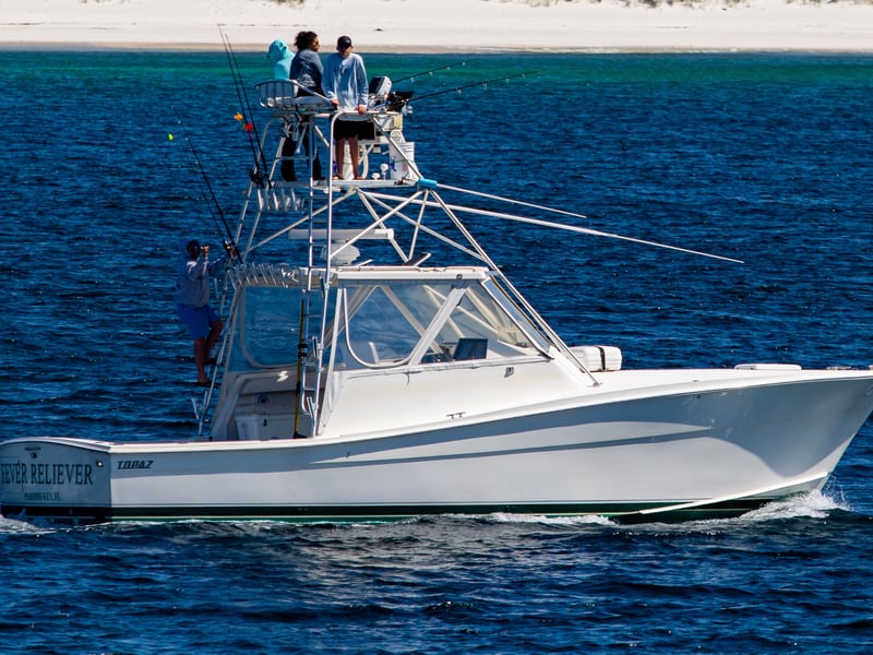 Head offshore aboard the 37' Topaz Fever Reliever for a comfortable private fishing charter. Fish federal waters for snapper, grouper, amberjack, and cobia with an experienced captain.