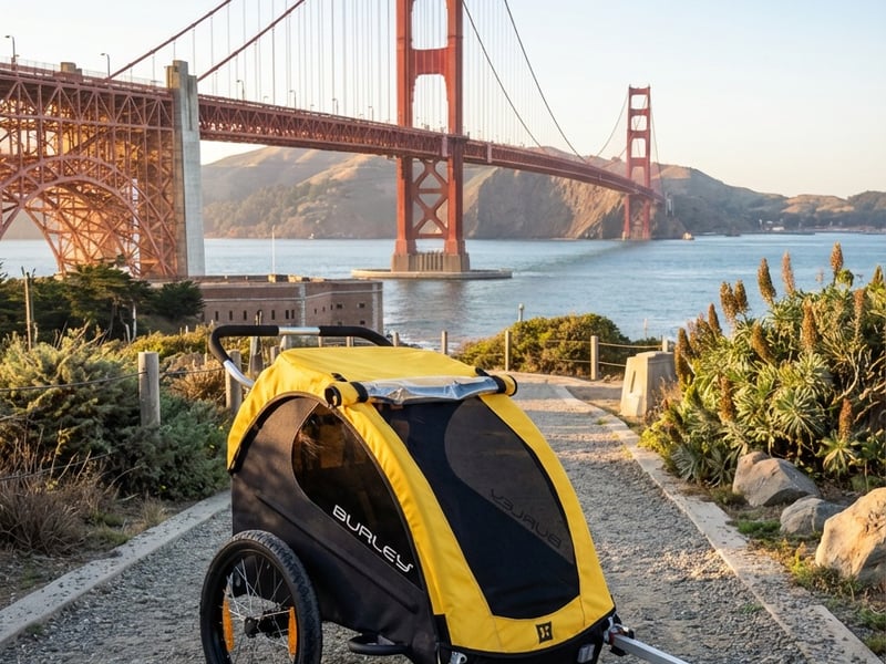 Enjoy an electric bike paired with a lightweight, nimble kids trailer designed for family outings. Experience easy controls, powerful assistance, and safety features for a smooth ride.