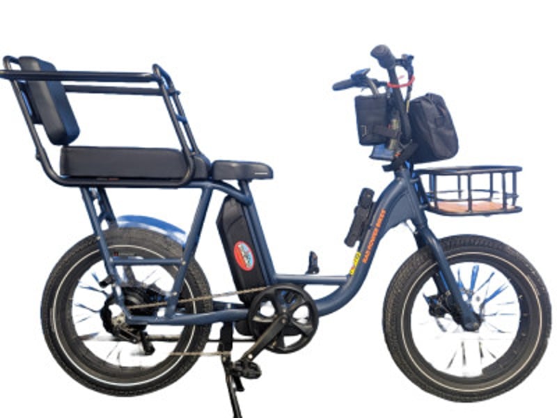 Ride a RadRunner 2 electric bike outfitted with a comfortable passenger seat. Enjoy smooth electric assist for city rides or all-day exploring.