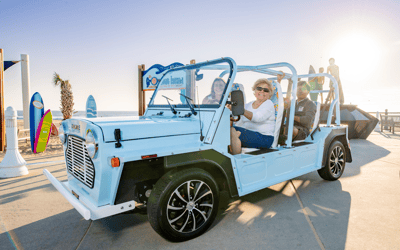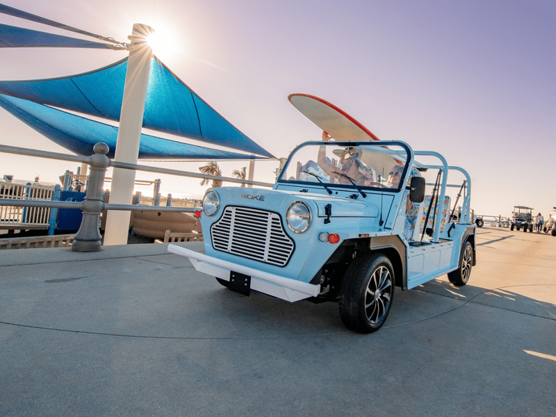 Explore in a street-legal electric Moke with low noise and zero emissions. Enjoy an easy rental with convenient local delivery.