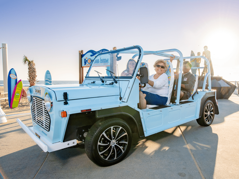 Valid driver’s license and proof of insurance required. $500 refundable damage deposit required; vehicle must be returned fully charged or a $50 fee applies. A signed rental waiver is required to take possession; Moke color is not guaranteed.