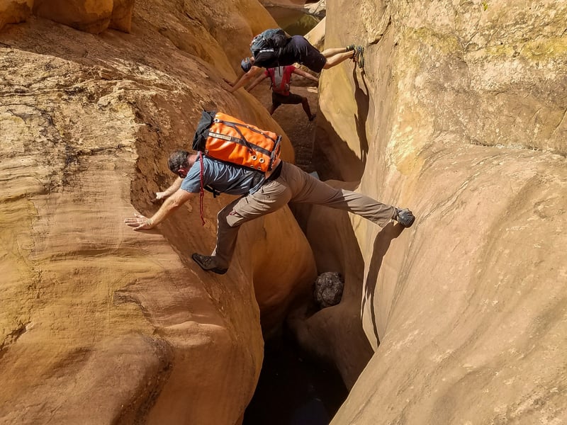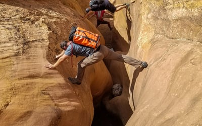 Explore Entrajo Canyon on a private four-hour canyoneering tour. Expect to get wet as you navigate two rappels, stemming and bridging, and pools 2-8 feet deep.