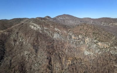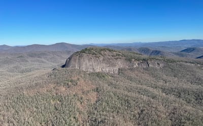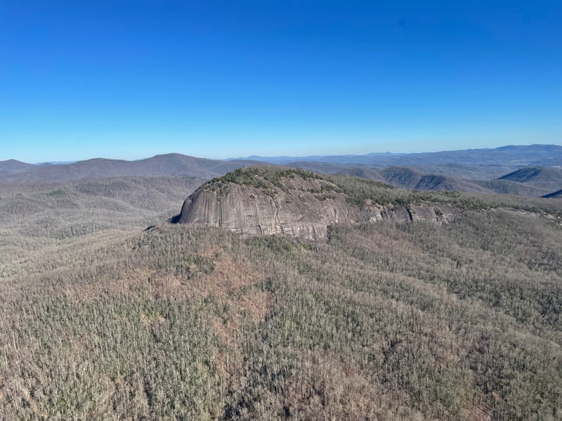 Fly over Pisgah National Forest and Looking Glass Rock for sweeping Blue Ridge Parkway views