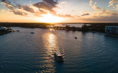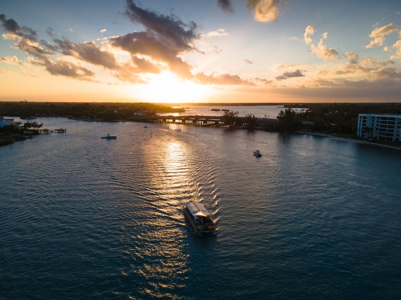 Unwind on a lively pontoon while you admire sunset views of Jupiter Lighthouse and waterfront estates.