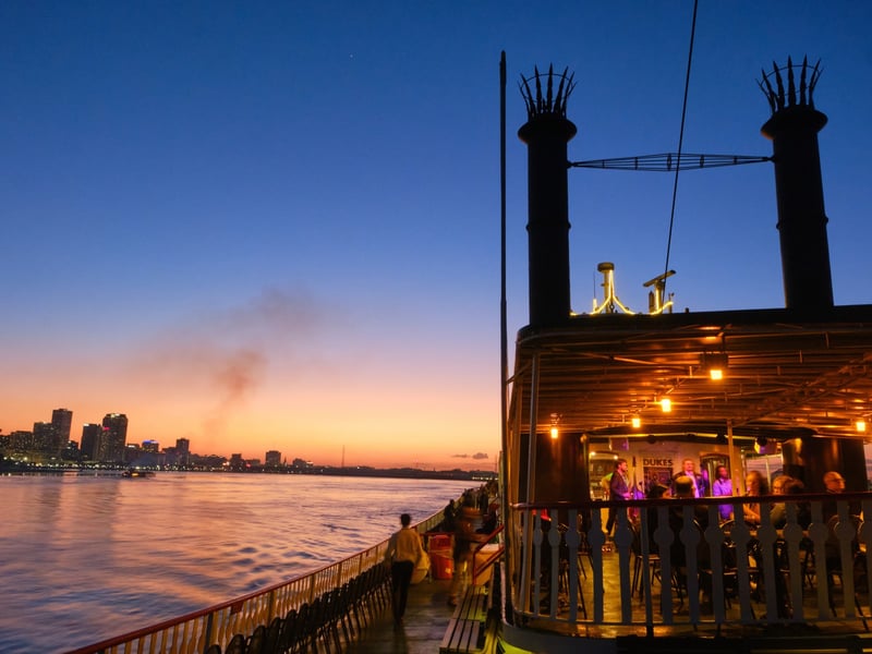 Sail the Mississippi at sunset while live jazz sets the mood on a historic steam-powered vessel