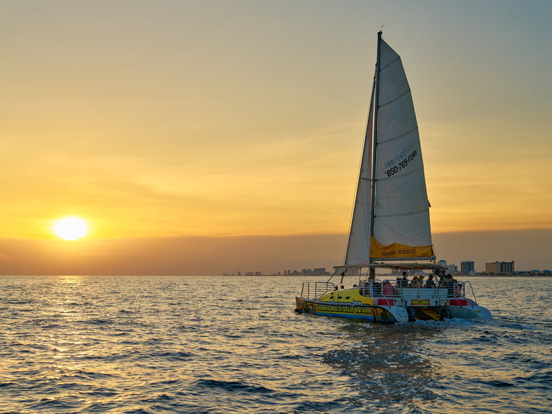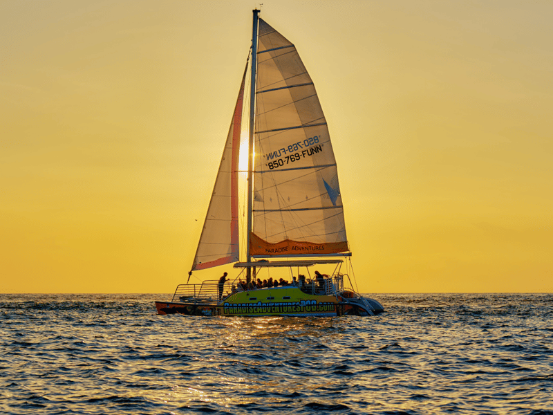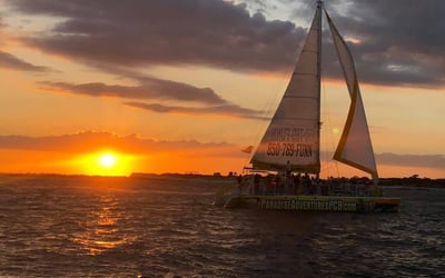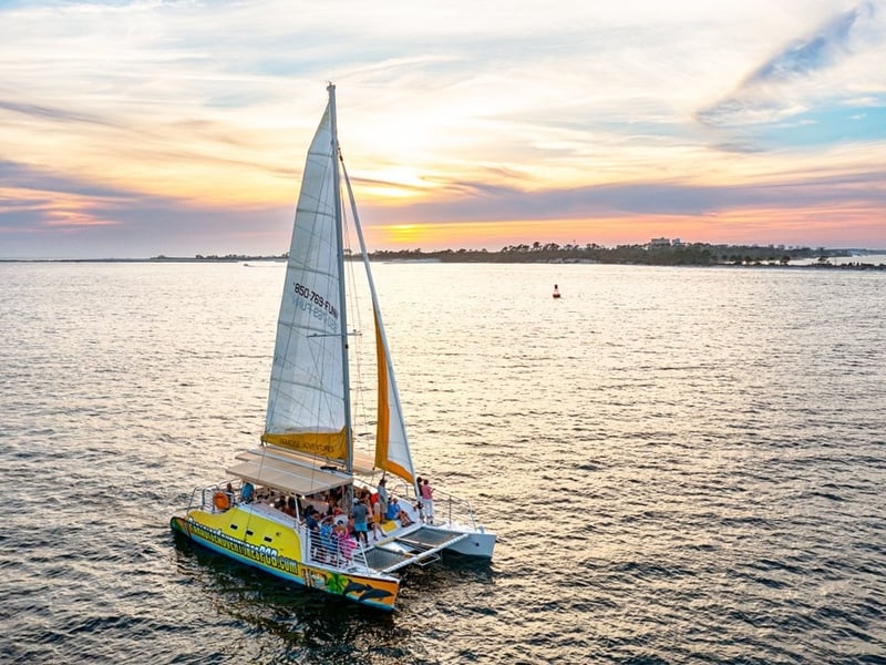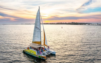 Watch the sky blaze with color as you sail aboard the 40-foot Footloose catamaran. Enjoy gulf breezes, tropical music, and a relaxed vibe as you look for dolphins and toast the day with a complimentary drink.