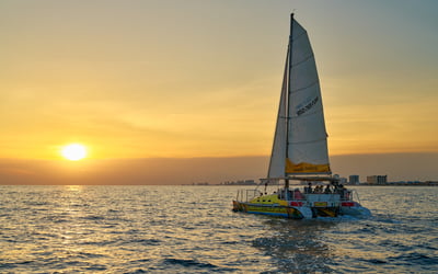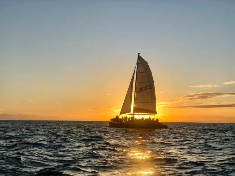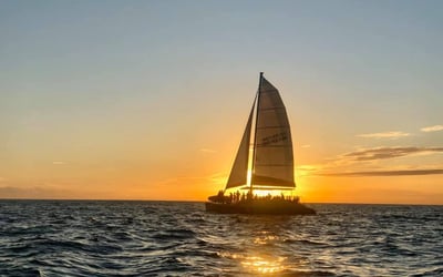 Relax on a 40-foot sunset catamaran with tropical music, dolphin sightings, and a complimentary drink