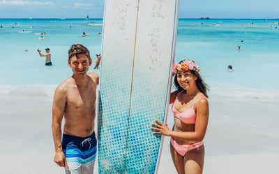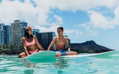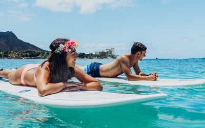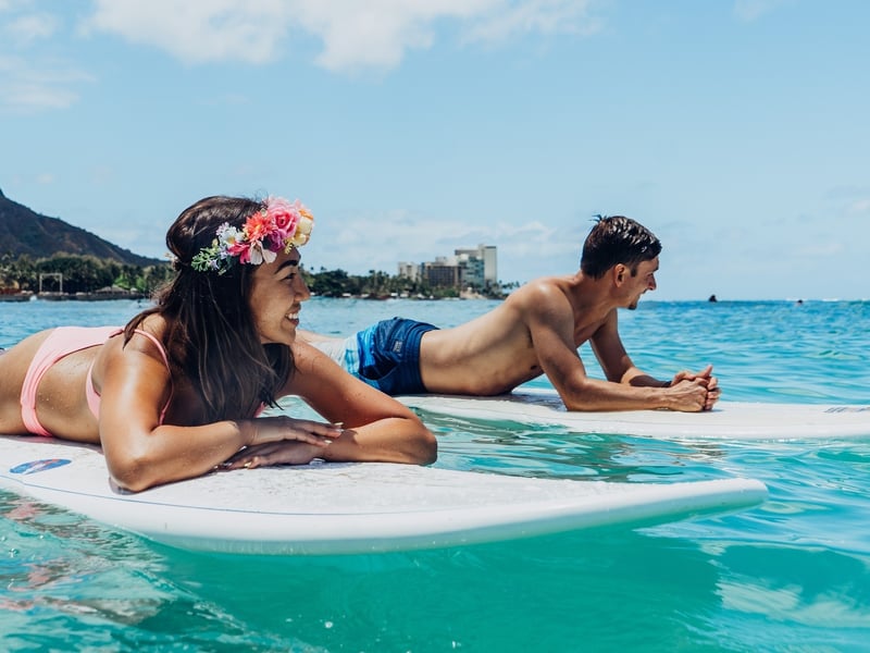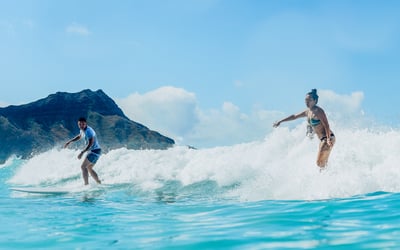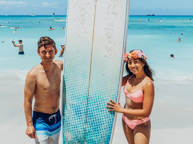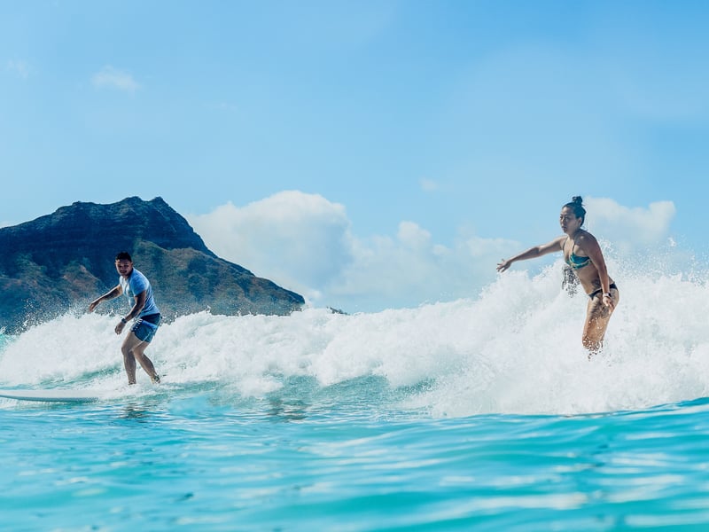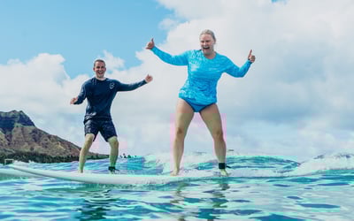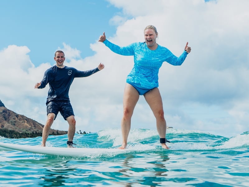Learn to surf together with a dedicated instructor in warm Waikiki waters