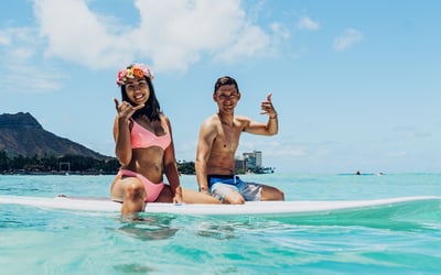 Learn to surf together in the warm, clear waters of Waikiki with a licensed instructor. Start with a land demo, then ride waves with personalized guidance for an hour.