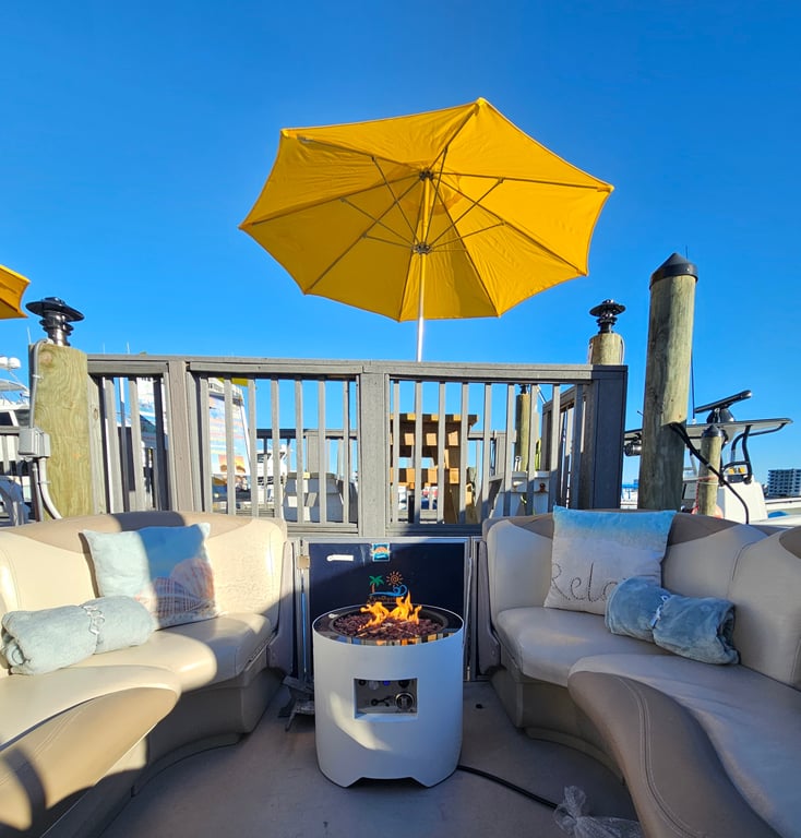 Cruise Destin Harbor on a comfy pontoon with hot chocolate and blankets