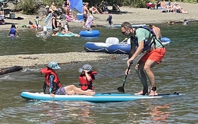Learn the basics of stand-up paddleboarding together at Gordon Bay on Cowichan Lake. Build skills as a family with personalized coaching and quality gear.
