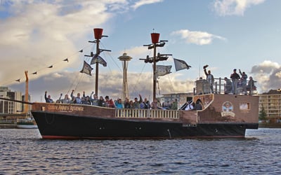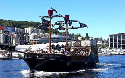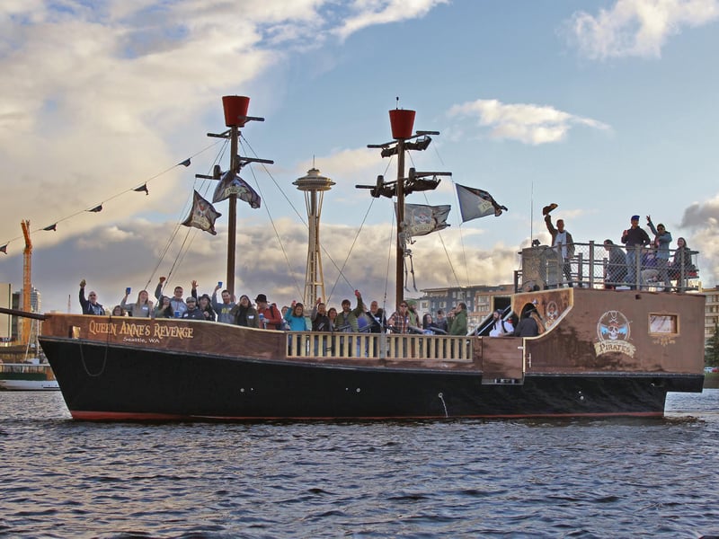 Set sail on Queen Anne's Revenge for a lively family cruise across Lake Union. Play pirate games, fire water cannons, and hunt for treasure during this one-hour voyage.