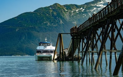 This scenic 45-minute catamaran ride between Haines and Skagway offers a pleasant way to experience the Alaskan coastline. The two-deck ferry includes an outdoor viewing area plus complimentary coffee, tea, and water. Most crossings feature knowledgeable naturalists who point out geological features and help spot wildlife, adding real educational value to the journey. The staff generally receives praise for being friendly and efficient, and you can bring bikes and well-behaved dogs aboard, which travelers appreciate for exploring once they reach port. Flexibility is essential when booking. The ferry occasionally cancels trips, and notification can be inconsistent, which has left some passengers scrambling for alternatives. This is particularly important if you're on a cruise ship schedule with tight timelines. Multiple reviewers recommend arriving 15 minutes early since departures sometimes leave ahead of schedule. During summer months, several daily trips run between the towns, giving you options for planning your day trip.