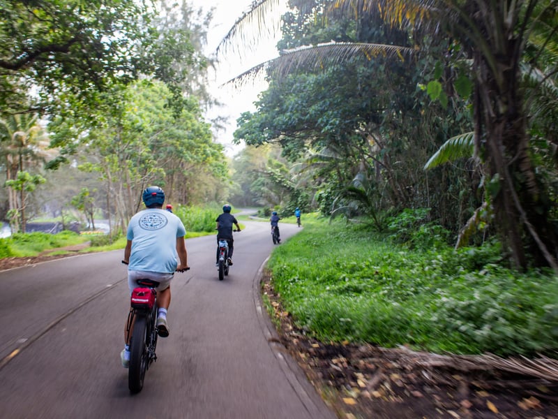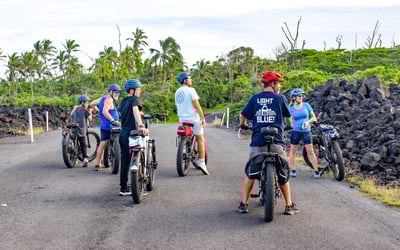 Ride powerful fat tire e-bikes along Kalapana Beach Road and through Volcanoes National Park. Cover more ground with ease as you explore lava-sculpted scenery and park highlights.