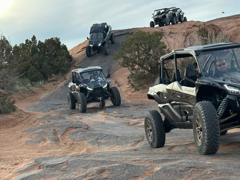 Outlaw Adventure delivers consistently exceptional off-road experiences in Moab, with guides who clearly know these trails inside and out. Jeff gets frequent shoutouts for his humor, driving skills, and ability to make four-hour tours fly by. Dan stands out for his calm teaching style and knack for building confidence in nervous drivers, while guides like Joe, Chris, Jeremy, and Robby all earn praise for being professional, funny, and skilled at gauging each group's comfort level. The fleet impresses too, with reviewers mentioning nearly new vehicles (including 2025 models) that are impeccably maintained and handle the terrain with confidence. Popular routes like Hell's Revenge and Fins & Things offer thrilling, technical challenges that feel adventurous without crossing into dangerous territory. Reviewers consistently mention feeling safe throughout, whether they're passengers in guided Jeeps or driving their own rigs with guide support. The guides clearly pace tours well, provide solid instruction, and stop frequently for photo ops and driver swaps. Multiple visitors say they'll specifically book with this company again on return trips, with one even calling it a spiritual experience. If you're hesitating about whether you can handle the trails, several reviews suggest this is exactly the right outfit to help you discover what you're capable of.