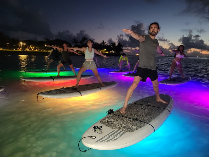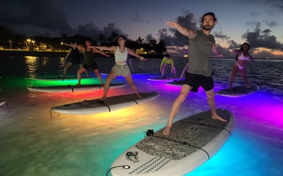 Paddleboard yoga on the ocean sounds intimidating, but most first-timers here found it surprisingly doable and genuinely magical. The instructors really seem to make the experience – names like Kelsey, Allie, Sariah, and Lety come up repeatedly for being attentive, encouraging, and skilled at working with everyone from total beginners to experienced yogis. They'll guide you through getting comfortable on the board before moving into poses, and they're great about modifications and meeting people where they are. Expect dreamy moments like doing downward dog while gazing at the water's surface, dipping your hands and feet in to cool off, and maybe even spotting a sea turtle swimming beneath you. The setting at Magic Island offers gorgeous mountain and ocean views, and if you time it right, you might catch Friday night fireworks or a stunning sunrise. There's one notable complaint worth mentioning: a visitor had a frustrating experience with a Friday evening instructor in August 2025 who seemed unprepared (not enough anchors for all the boards), had a negative attitude from the start, and mishandled the photo add-on situation in a way that felt dismissive and unprofessional. That stood out as an outlier in an otherwise overwhelmingly positive collection of feedback. Speaking of photos, the $10 add-on gets mentioned as totally worth it. Most people describe this as a highlight of their Hawaii trip – challenging enough to feel like an accomplishment but relaxing enough to melt away travel stress. It's particularly popular with honeymooners and those looking for something uniquely Hawaiian beyond the usual beach day.