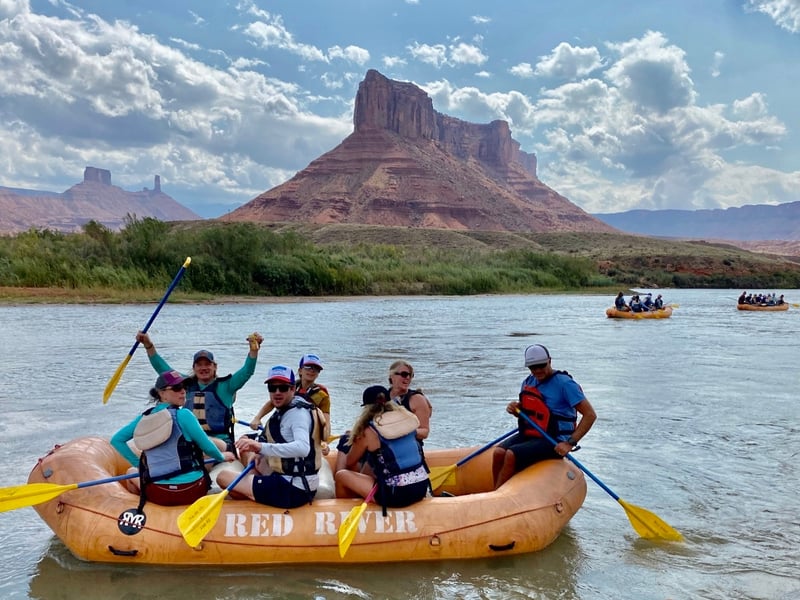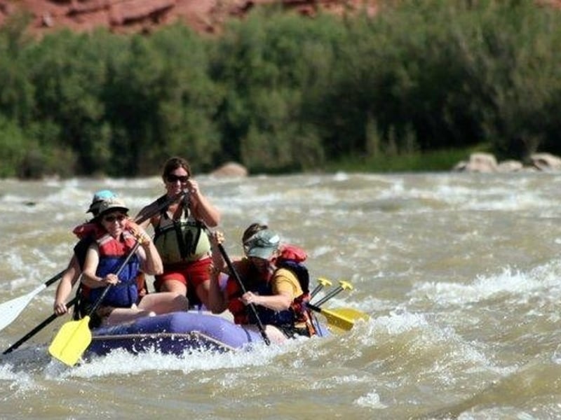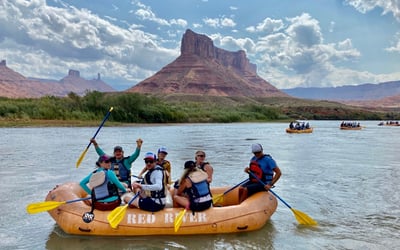 Raft a shorter stretch near Moab with views of Fisher Towers and the La Sal Mountains as you navigate fun Class II rapids. Cover about 6 miles over 3-4 hours, with a scenic drive to the launch, a safety briefing, and splashy waves along the way.