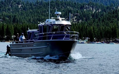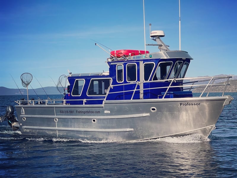 Fish Lake Tahoe aboard the 35-foot Professor, a fast, comfortable charter boat built for local waters. Join an experienced crew using top gear to maximize your chance of catching fish.
