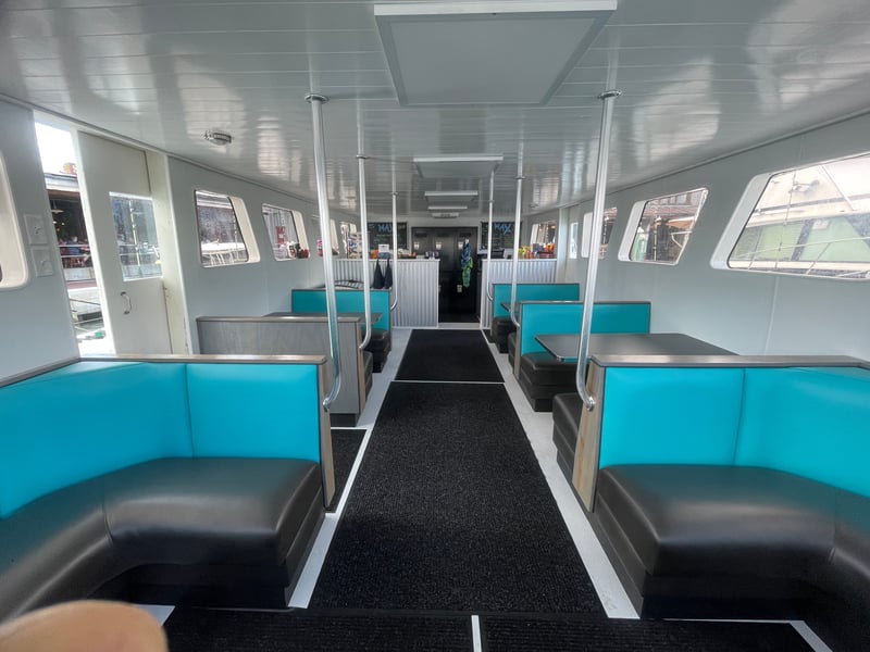 Arrive 30–45 minutes before departure for check-in and a brief pre-boarding seminar. You may bring one 10–15 quart cooler per person. Outside alcoholic beverages and glass containers are not allowed; no illegal drugs, firearms, or GPS devices.