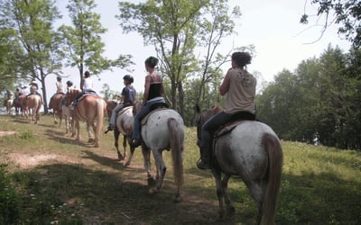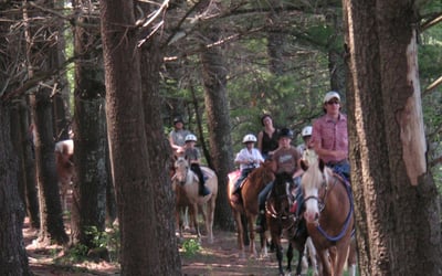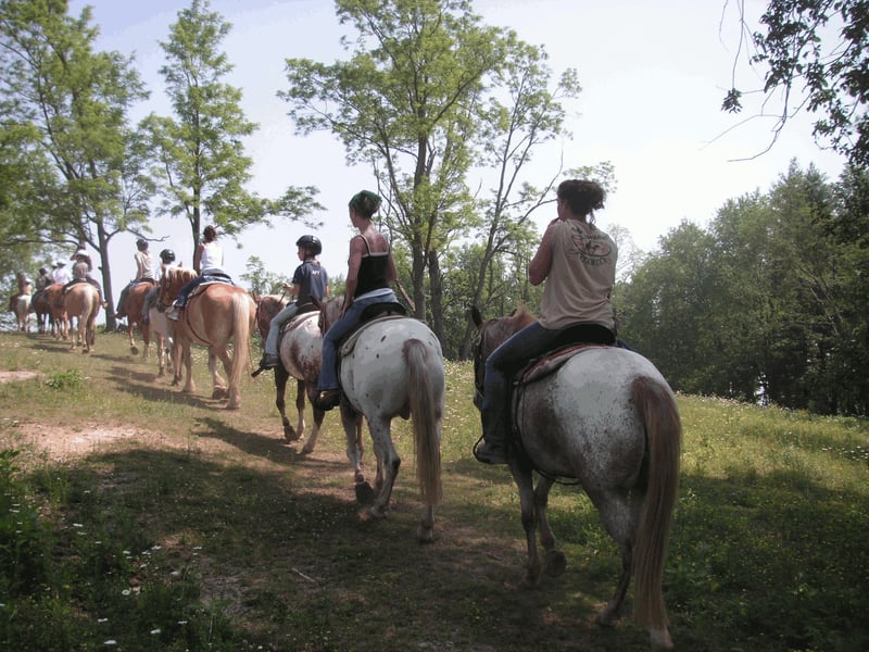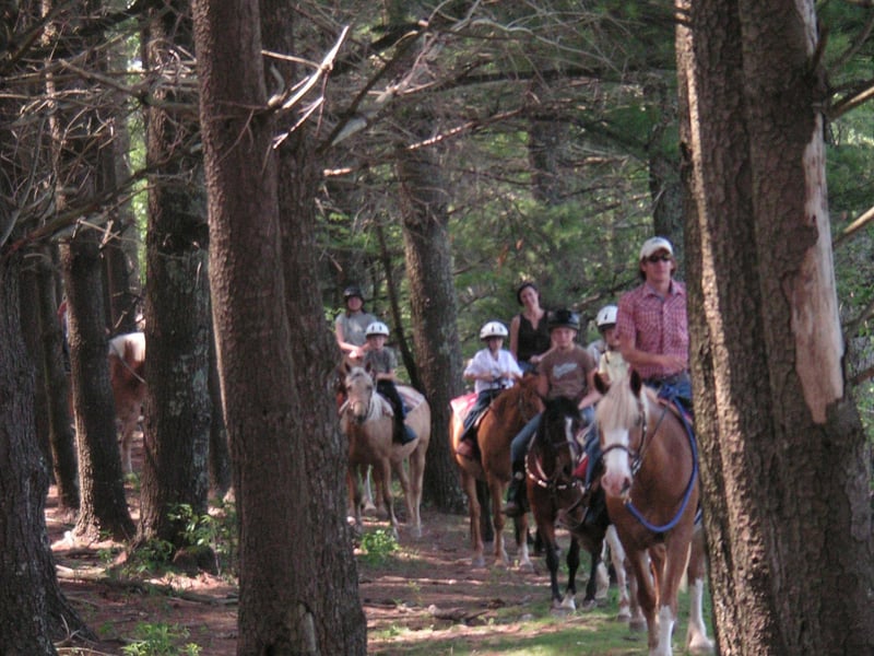 Riders are typically 6 and up; some 5-year-olds may ride. Weight limit is 250 lb for walking trails; weight should be proportional to height. No double riding; helmets are mandatory for under 18; closed-toe shoes required and long pants recommended; trails operate rain or shine.