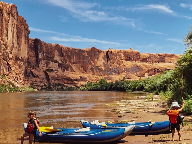 Enjoy a calm, family-friendly kayak trip down the Colorado River. Paddle beneath sandstone cliffs that border Arches National Park as you float, paddle, and swim downstream with a knowledgeable guide.