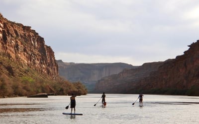Paddle a gentle, flatwater stretch of the Colorado River on a family-friendly stand-up paddleboard trip. Float beneath towering sandstone cliffs bordering Arches National Park as guides share stories about Moab.