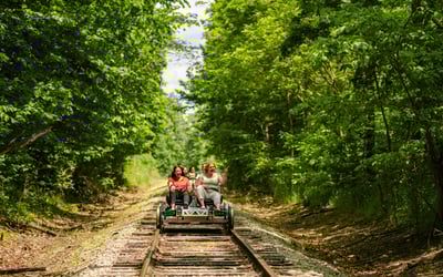 Pedal specialized rail bikes along historic tracks in Northern Hamilton County on a 7-mile round-trip ride. Enjoy quiet woodlands, farmland and wildlife as you journey from Hobbs Station to Devin Wye and back.