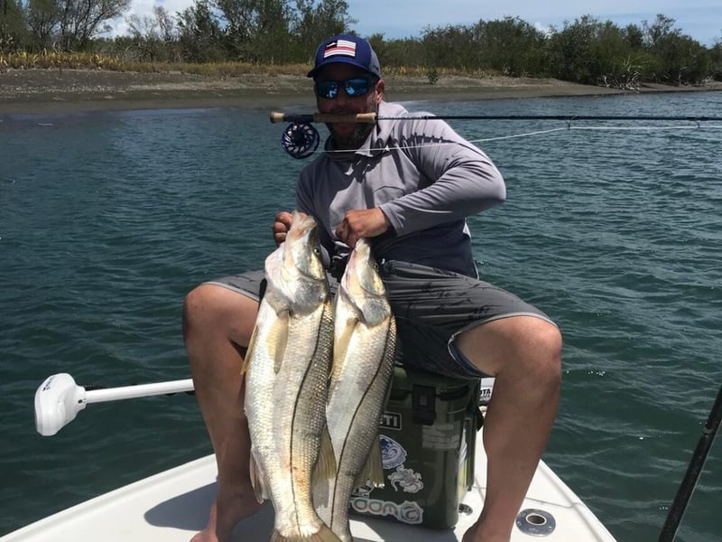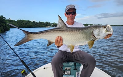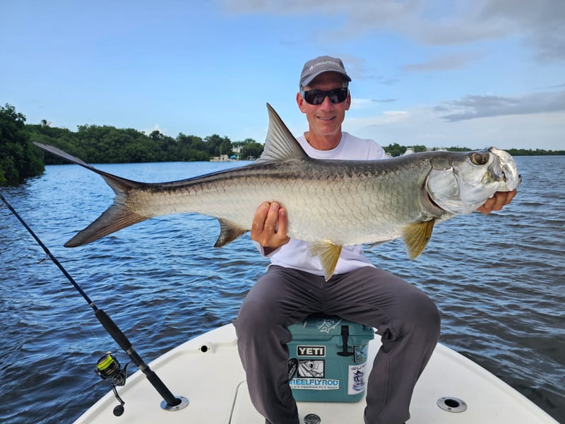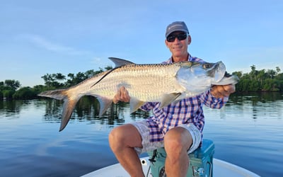 Fishing is unpredictable; on average you may see 6–7 strikes and landing 2–3 tarpon is considered successful.